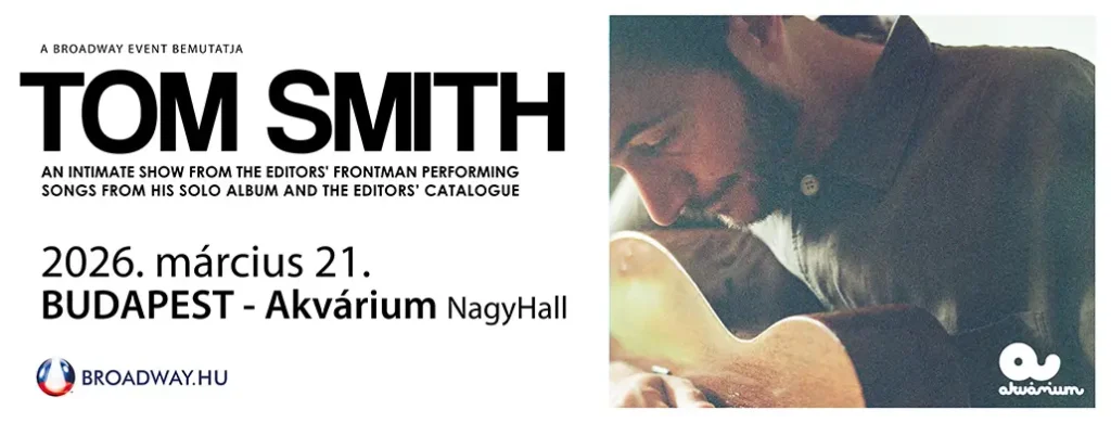Egy meghitt este az Editors frontemberével 2026. március 21. 20:00 Akvárium 1051 Budapest, Erzsébet tér 12. Kapunyitás: 19.00 Jegyek kaphatók:2025. november 7-én, pénteken 11 órától Az Editors frontembere, Tom Smith egy intim hangulatú koncerten mutatja be a There Is Nothing in the Dark That Isn’t in the Light című debütáló albumát 2026. március 21-én az Akvárium […]