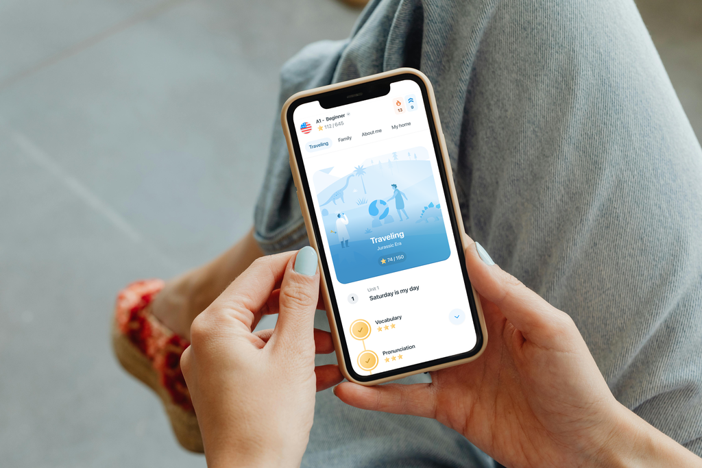 A rendszer a belépéskor szintfelmérőt kínál, majd személyre szabott tananyagot javasol. A tanulás önálló tempóban zajlik, napi kisebb célkitűzésekkel. Az AI-vezérelt beszédszimuláció különösen hatékonyan fejleszti a beszédkészséget, mivel valós élethelyzeteket modellez, és alkalmazkodik a felhasználó szintjéhez. A fejlődést játékos elemek – XP pontok, csillagok, oklevelek – teszik motiválóvá és átláthatóvá.